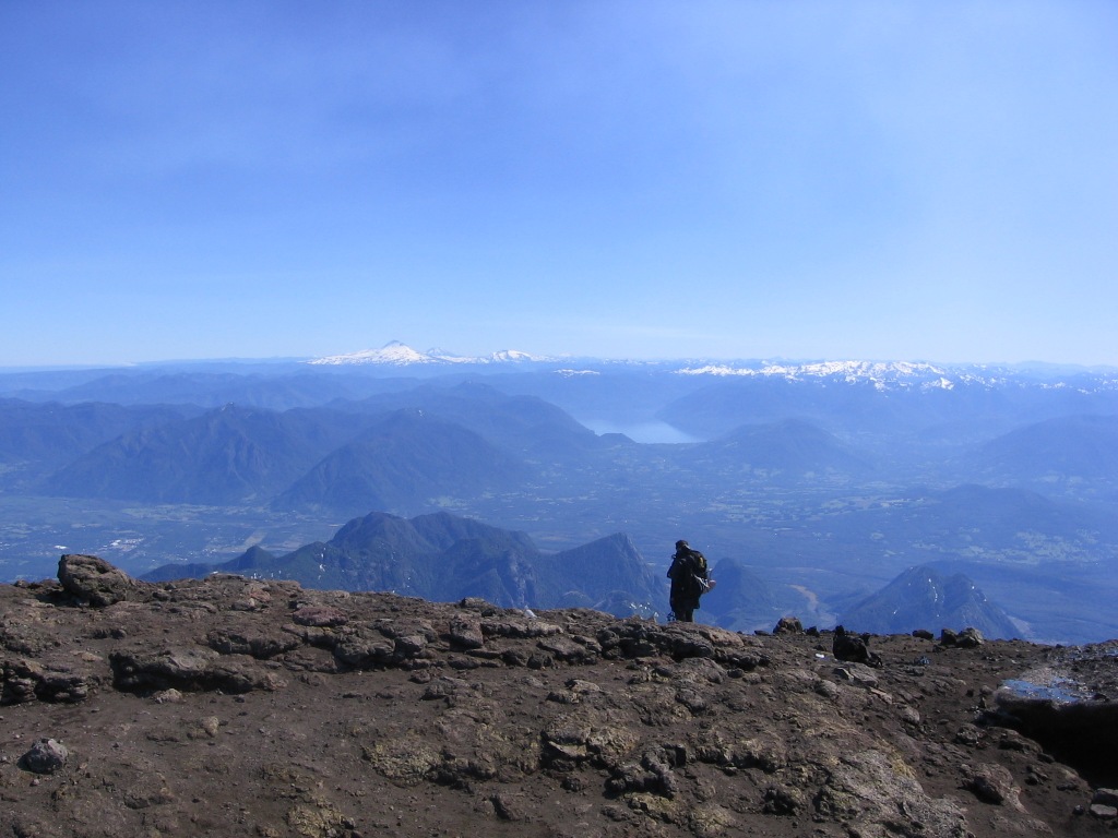 Et nous voila a 2847 mètres, il est 9h quand nous arrivons au sommet, les premiers, avec une vue sur toute l` Araucanie et ses volcans. Il nous faut rester sur nos gardes car les vapeurs du lac de laves (invisibles car trop profond, dommage…) sont très dangereuses.